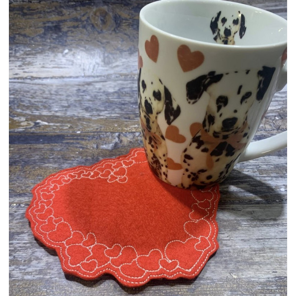 Die Herzen bekommen einen Rahmen und können schön als Untersetzer verwendet oder verschenkt werden.
