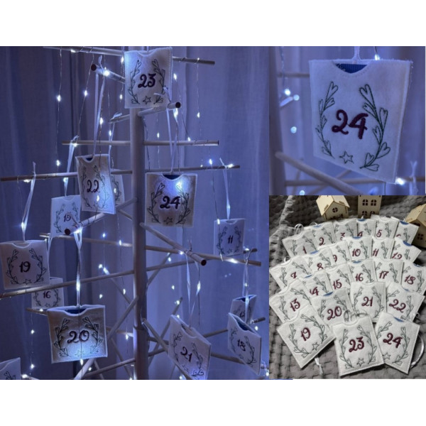 Du bekommst diese Datei "ITH Adventskalender Tee", mit den 24 Hüllen ITH. Alle Hüllen haben das gleiche Motiv mit wechselnder Zahl - 1 bis 24.