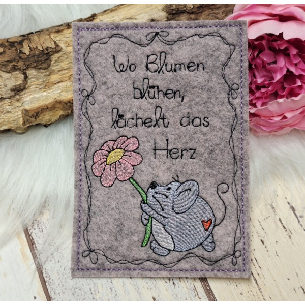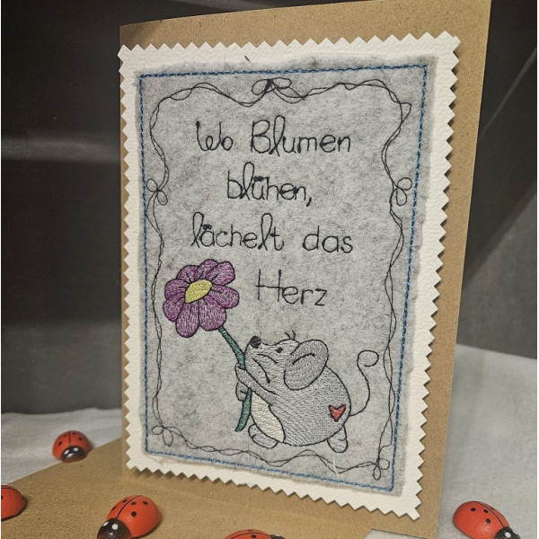 Du kannst diese Karten auf Filz, Kunstleder o.Ä. sticken, die Rückseite mit Tonkarton unterlegen und mit einem zusätzlichen Gruß rückseitig beschriften.