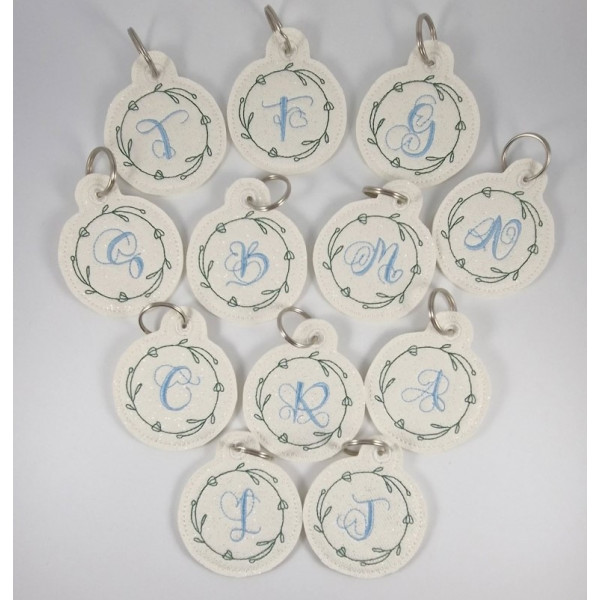 Du bekommst diese Datei "ITH Anhänger Monogram", wie angezeigt, mit dem Alphabet in A-Z, auf Anhängern in der Größe 8x7cm.