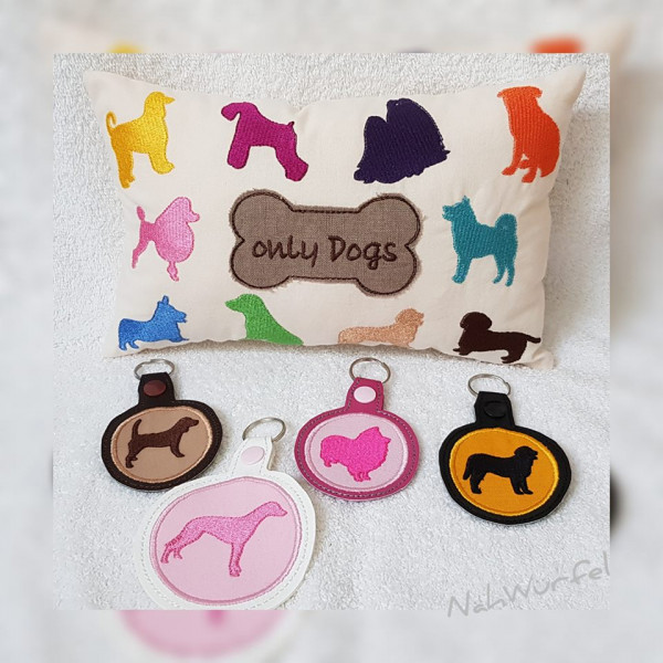 10x10 findest du in Fransenappli, die anderen beiden Größen sind kleiner, und in Füllstich. Beide Füllstichgrößen sind einfach in den mitgelieferten Anhänger (zwei Größen, zwei Varianten) einfügbar, oder auch einzeln zu verwenden. Wenn Du die Anhänger sticken möchtest, solltest Du die jeweilige Hunde-Datei als 5., und vorletzte Sequenz einfügen. Ein Tutorial zur Erstellung eines Anhänger liegt bei.