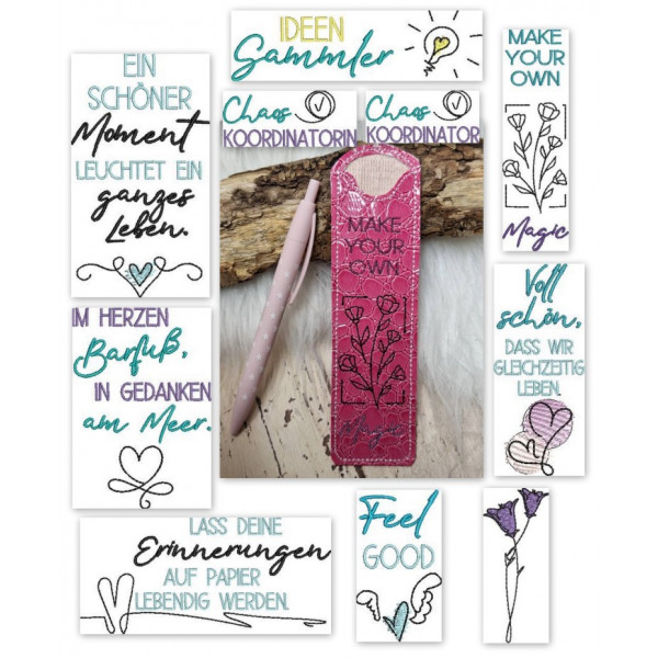 Du bekommst diese Datei "ITH Stiftehülle", mit 11 Motiven für Stiftehüllen, sowie eine Blanko zum selbst befüllen.