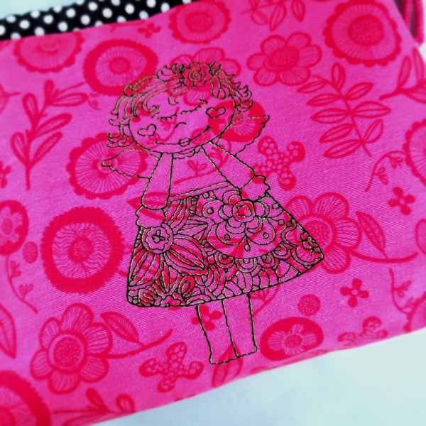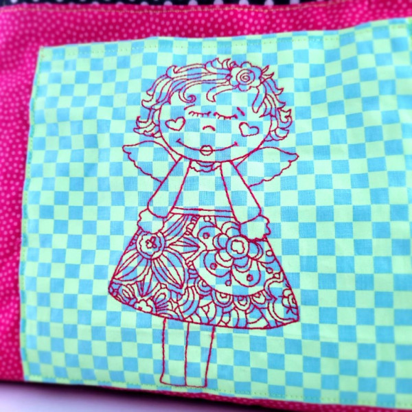 Das Engelchen wird in Line Art gestickt.