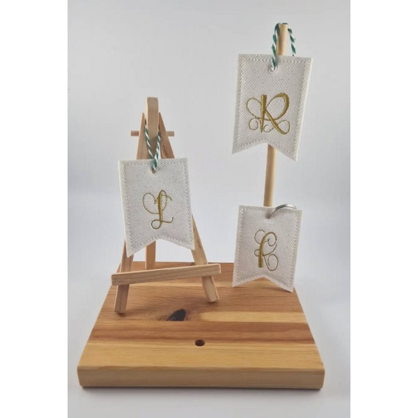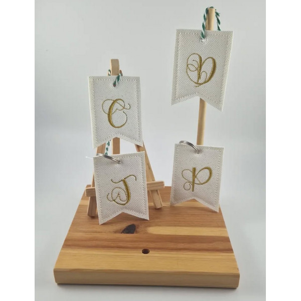 Du bekommst diese Datei "Wimpel Monogram", wie angezeigt, mit einem Wimpel in ca 4x6cm pro Buchstabe des Alphabets.