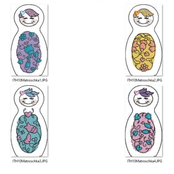 Du bekommst diese Datei "ITH Anhänger Matroschka", wie angezeigt, mit 5 Motiven für Postkarten in ca 10x14cm.