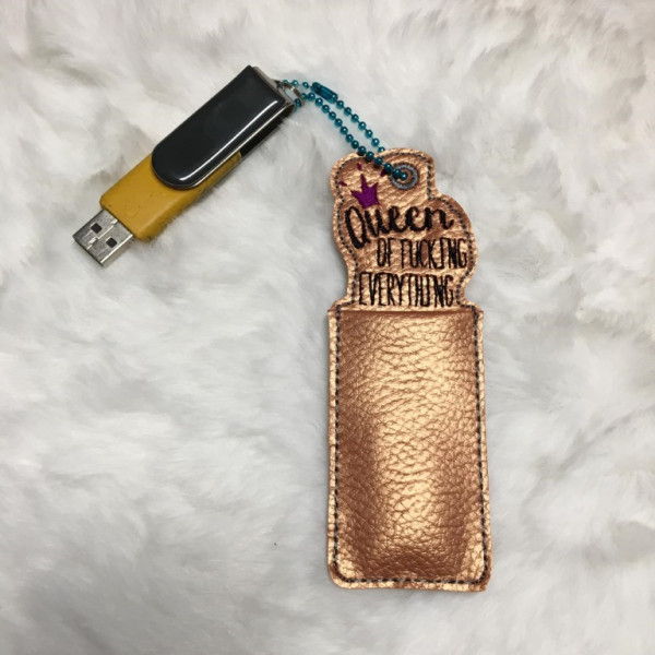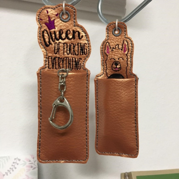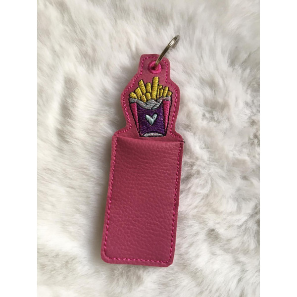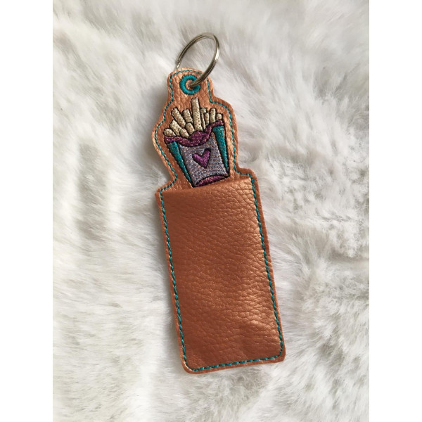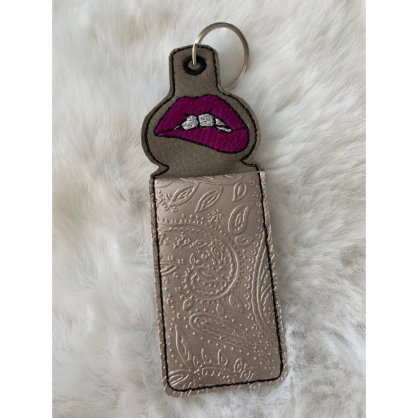 Die Tasche passt für die meisten handelsüblichen Lippenbalsam Stifte/Tuben, sowie USB Sticks. Die Öse wird gestickt - kann jedoch auch je nach Wunsch durch eine Metallöse ersetzt werden.