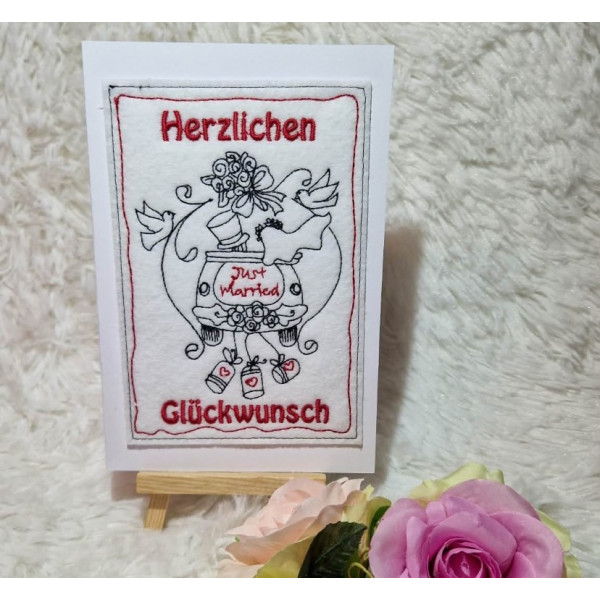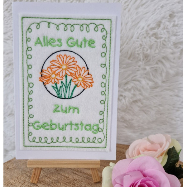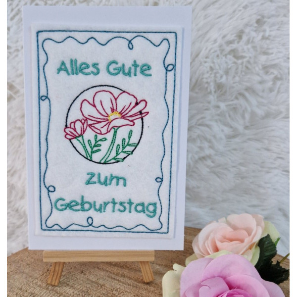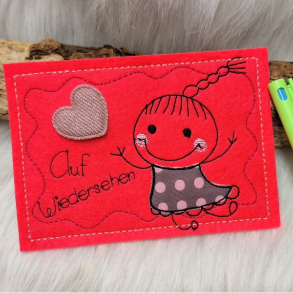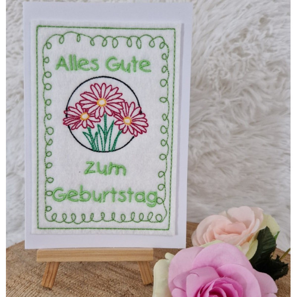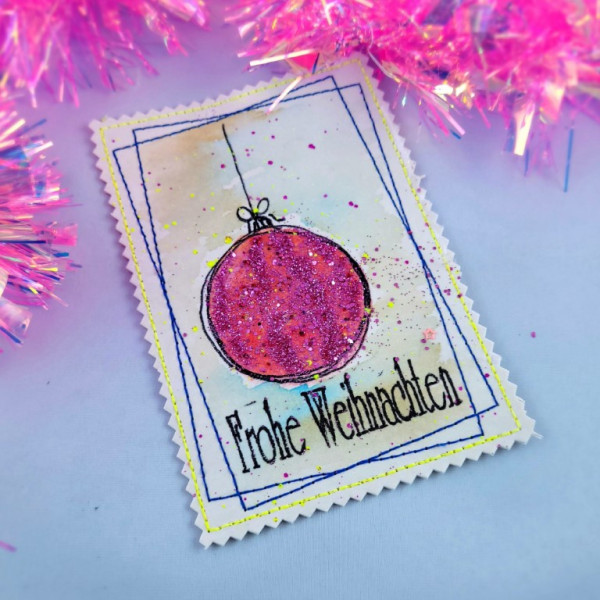 Du kannst diese Karten auf Filz, Kunstleder o.Ä. sticken, die Rückseite mit Tonkarton unterlegen und mit einem zusätzlichen Gruß rückseitig beschriften.