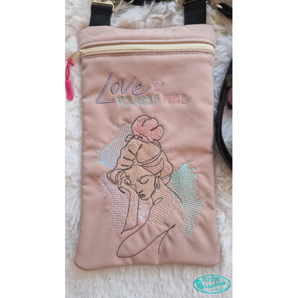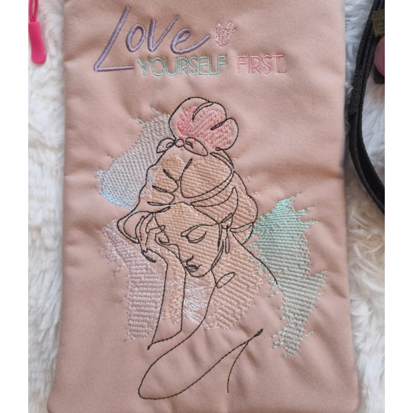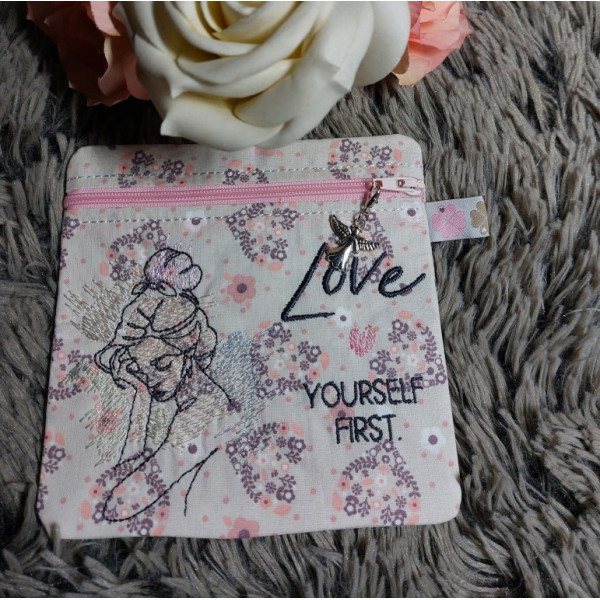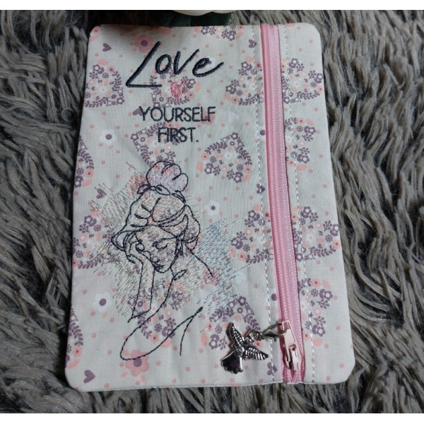 Du bekommst diese Datei "Love yourself first", wie angezeigt, mit dem Motiv in 5 Größen - 6x10cm, 8x14cm, 9x16cm, 10x18cm, 12x20cm.
