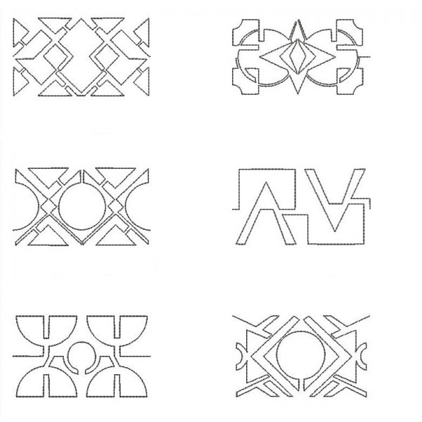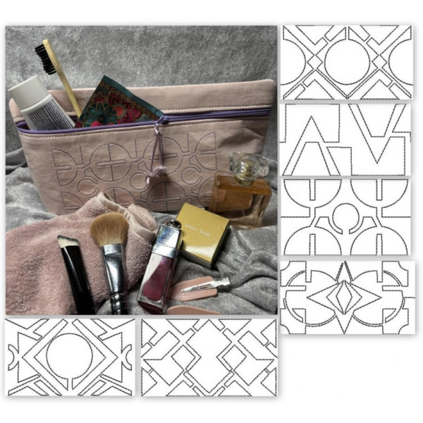 Die Motive sind alle sehr abstrakt und lassen sich, wenn gewünscht verbinden. Die Motive können auch mit Vlies oder Fleece unterlegt werden, damit ein leichter Trapunto Effekt entsteht.